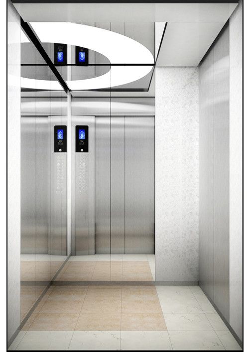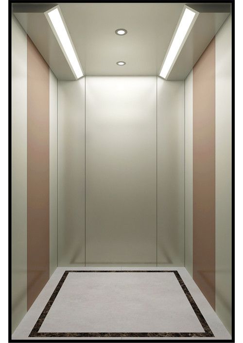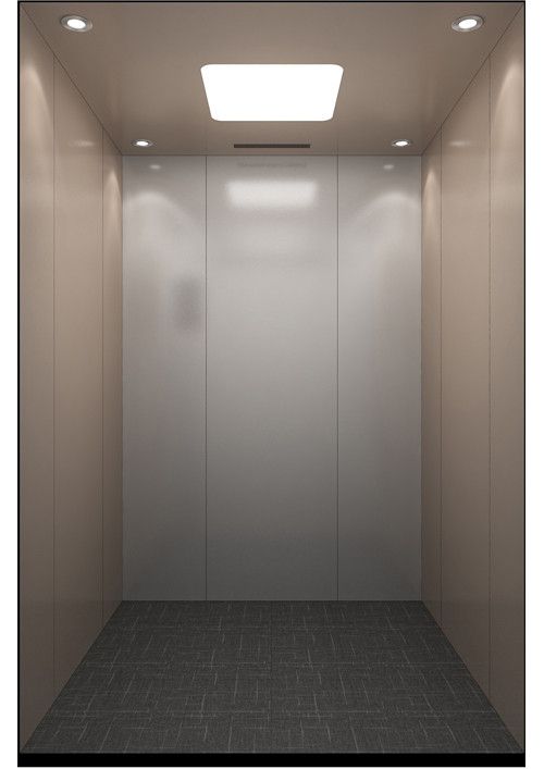 轎廂款型:半塘浮玉  天井ECO-BT,金屬烤漆(YM-14)+鏡面不銹鋼  前側(cè)板、門楣發(fā)紋不銹鋼  兩側(cè)彩紋鋼板(YP11)+鏡面不銹鋼+發(fā)紋不銹鋼  后側(cè)板鏡面不銹鋼+彩紋鋼板(YP11)  轎門發(fā)紋不銹鋼  操作盤BC-D2F2  地板PVC(FL-PH12)  踢腳板發(fā)紋不銹鋼